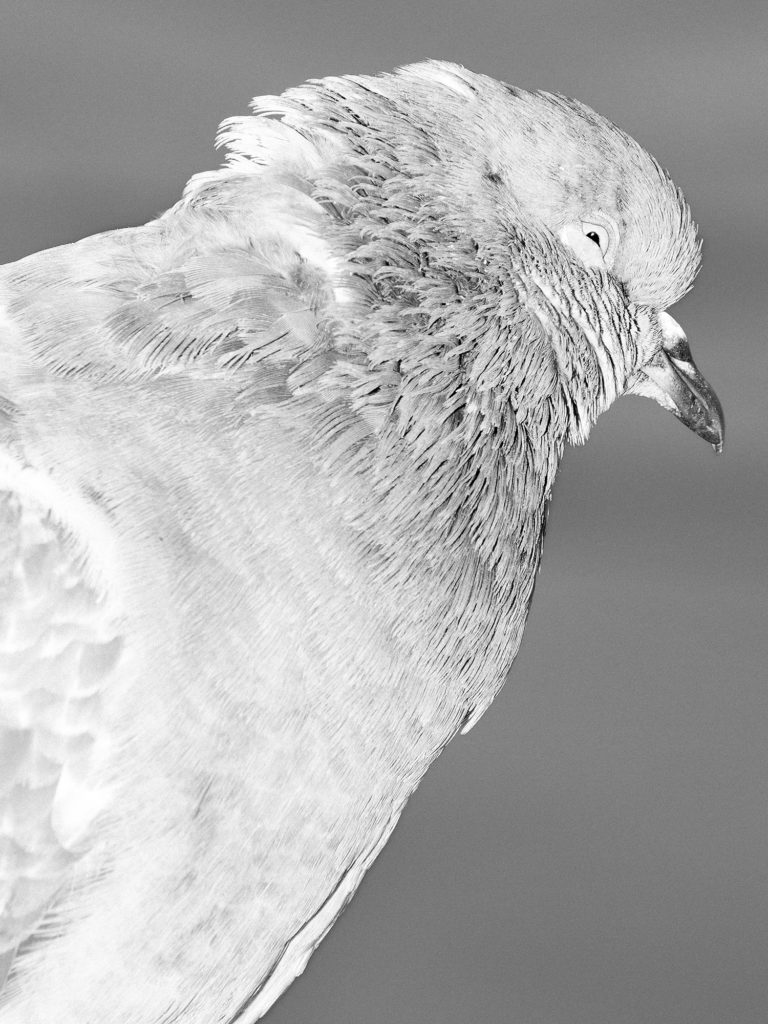 “Citizen”, 2015, is a series of larger than life portraits of common city pigeons. “These animals are overlooked, hated even, but a this level of magnification they become individuals. I like that, the elevation of the banal”, says Lange. “We share urban life with the pigeons, an oftentimes quite hostile or alienating space, and they are citizens too!”