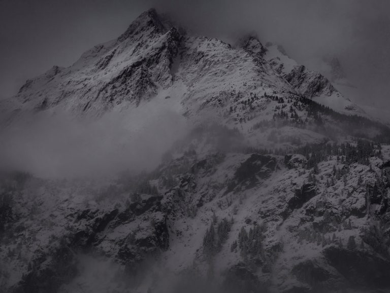 „Das Schwerste und das Leichteste finden zusammen im Gebirge. Hier der massive, scheinbar unverrückbare Fels, tausende Meter hoch aufgetürmt, schrundig und mächtig, bedeckt mitunter von zusätzlichen tonnenschweren Schneelasten. Und dort Wolkenfetzen, vom Wind zusammengetrieben und sofort wieder auseinandergeblasen, ohne Ort und ohne Halt. (…) Langes Fotografien aus den französischen Alpen sind außergewöhnlich. Weil sie die Grenzregion ausloten zwischen dem gerade noch Sichtbaren und dem Unsichtbaren. Weil sie den Moment bannen, in dem sich aus der Dunkelheit der Nacht oder aus dem Dickicht der Wolken soeben erste Strukturen herausschälen – oder, umgekehrt, sich ein Vorhang zuzieht und ein letzter flüchtiger Blick auf das möglich ist, was eine Sekunde später komplett verborgen sein wird.“