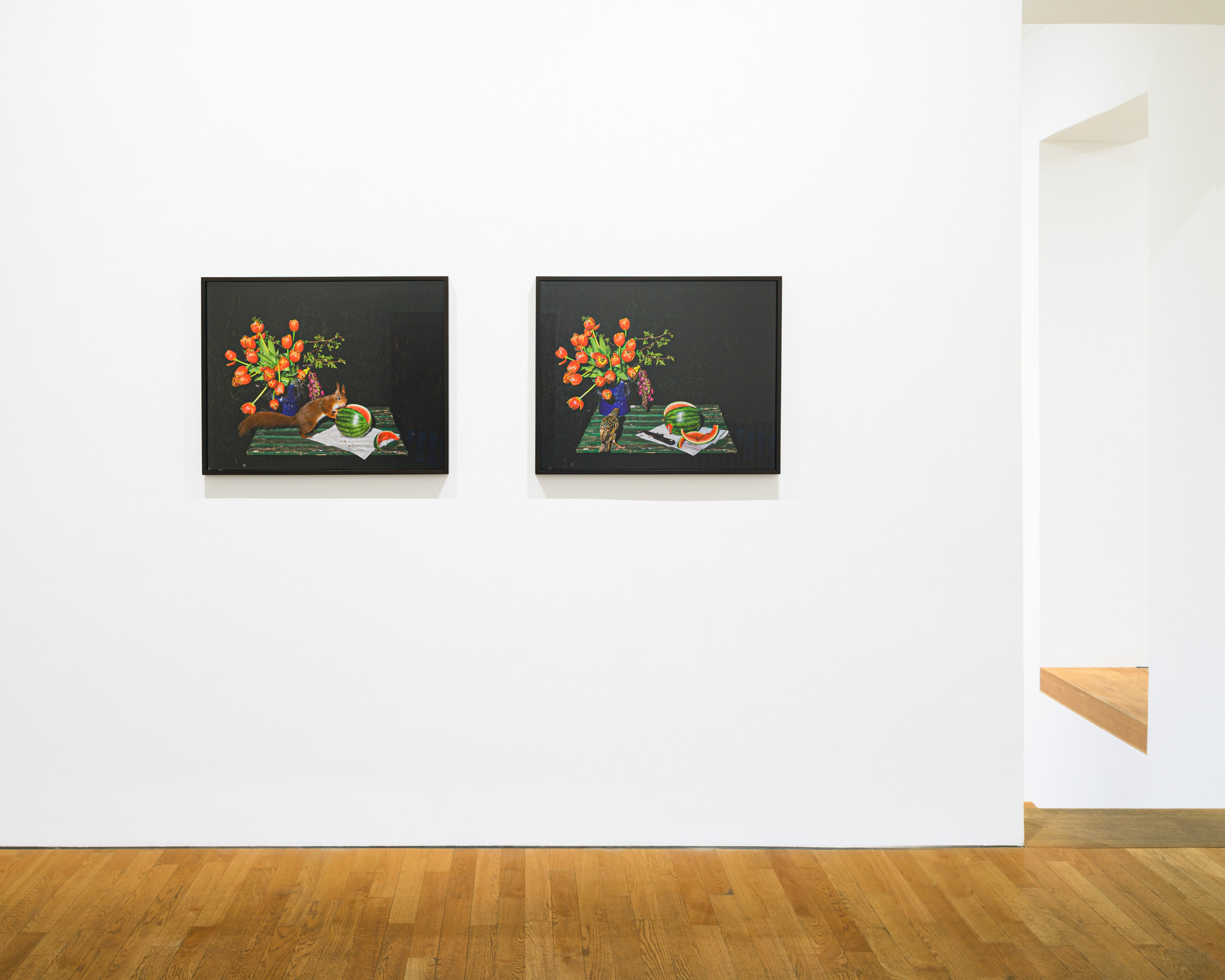 „Für meine neue Arbeit lade ich mich selbst zum Essen und Trinken in die Gärten und auf die Terrassen meiner Freunde ein. Die Gedecke auf dem Gartentisch werden durch mein Eingreifen zur Grundlage eines Stilllebens. Nachdem ich gegangen bin, bleibt eine Kamera als passiver Beobachter für einige Stunden oder ganze Tage zurück. Sie wird durch Bewegung ausgelöst, wenn Vögel oder wilde Tiere den Tisch besuchen. Auf diese Weise entstehen Bilder, bei denen nicht klar ist, ob es sich um eine dokumentierte Szene oder ein arrangiertes Stillleben handelt. Ich finde es faszinierend, das Inszenierte und das Zufällige in einem Bild zu verbinden. Plates ist eine halbdokumentarische Stilllebenstudie, die sich der Grauzone zwischen den Lebensräumen von Menschen und Wildtieren widmet“, erklärt die Künstlerin.